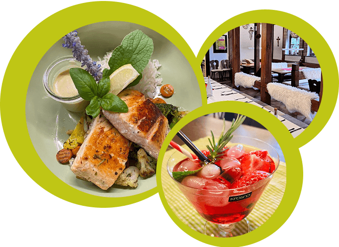 genießen Sie eine Vielzahl von köstlichen Gerichten mit saisonalen Zutaten und kreativen Kombinationen, von unserer regelmäßig variierenden Speisekarte.